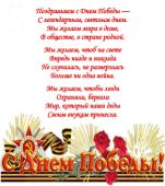 День победы — значимый и волнующий для каждого жителя нашей страны праздник, который мы отмечаем как дань памяти и глубокого уважения славным защитникам Отечества, всем, кто самоотверженно, героически на фронте и в тылу приближал долгожданный день Великой Победы. Это то, что объединяет нас и делает непобедимыми перед лицом любых испытаний. Завоеванная старшими поколениями Победа и сегодня вдохновляет нас на новые свершения, укрепляет наш дух, помогает преодолевать трудности и идти вперед. От всей души желаем вам здоровья, счастья, благополучия, мирного неба над головой и неиссякаемой веры в лучшее будущее. С Днем Великой Победы!